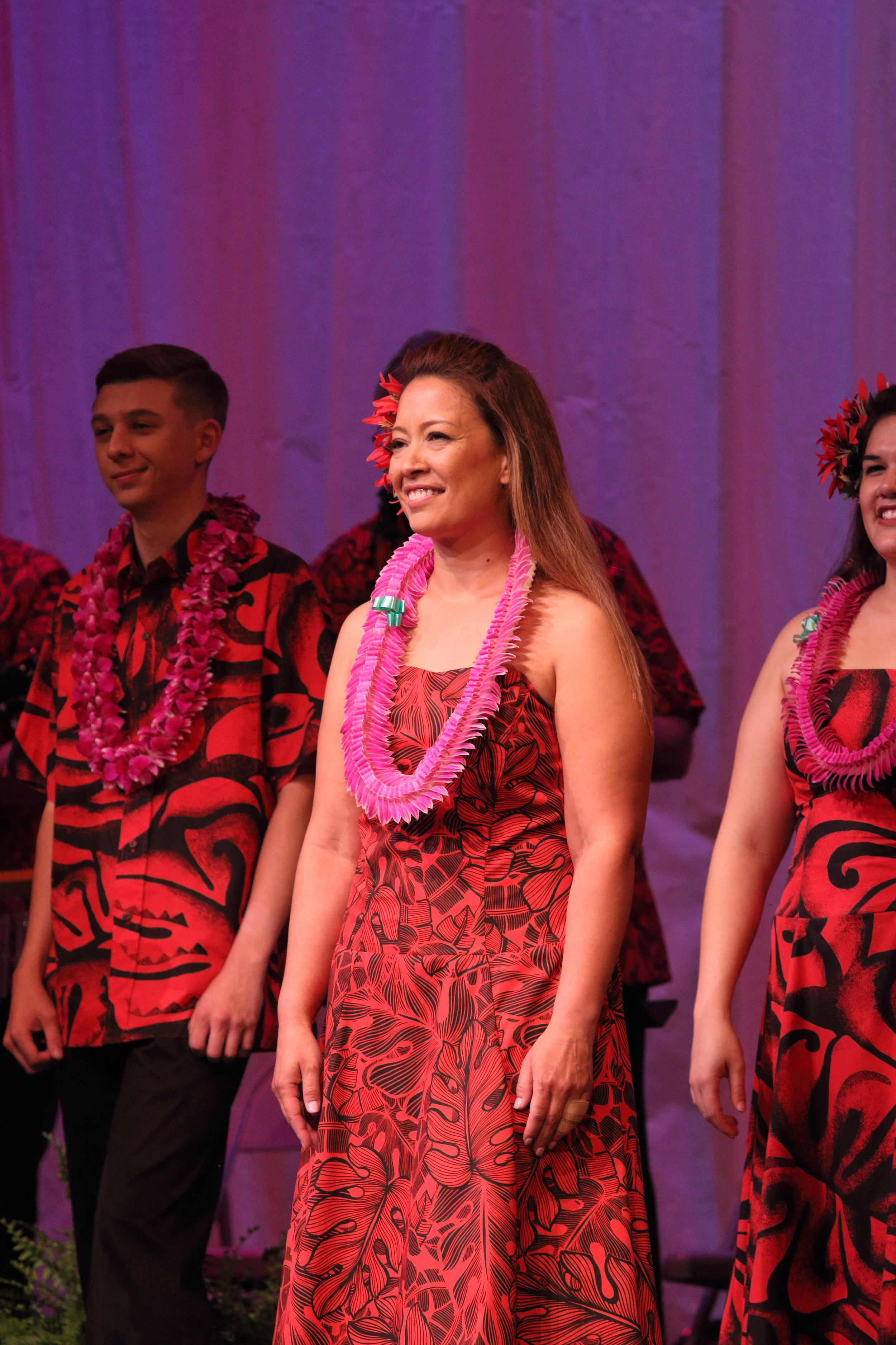Born in Tokyo, Japan, Huakea began her Hawaiian studies in Kailua, Oʻahu, at the age of seven under the instruction of Aunty Bella Richards. After moving to Northern, Virginia in 1973, she continued her studies under Kumu Hula Harold Mahealani “Mahina” Bailey. In 2008, she joined Hālau O ʻAulani and studied under Kumu Keith and Kumu Kimo Awai. She is a graduate of Virginia Tech with an MBA, a Certified Personal Trainer, and works as a Business Analyst with MicroPact in Herndon, VA. All three of her boys, Steven, Michael, and David have studied hula, and now her stepdaughter, Ashley, is a current haumāna (student) of Hālau Nohona Hawaiʻi. She lives with her husband, John, and three children in Ashburn, Virginia.