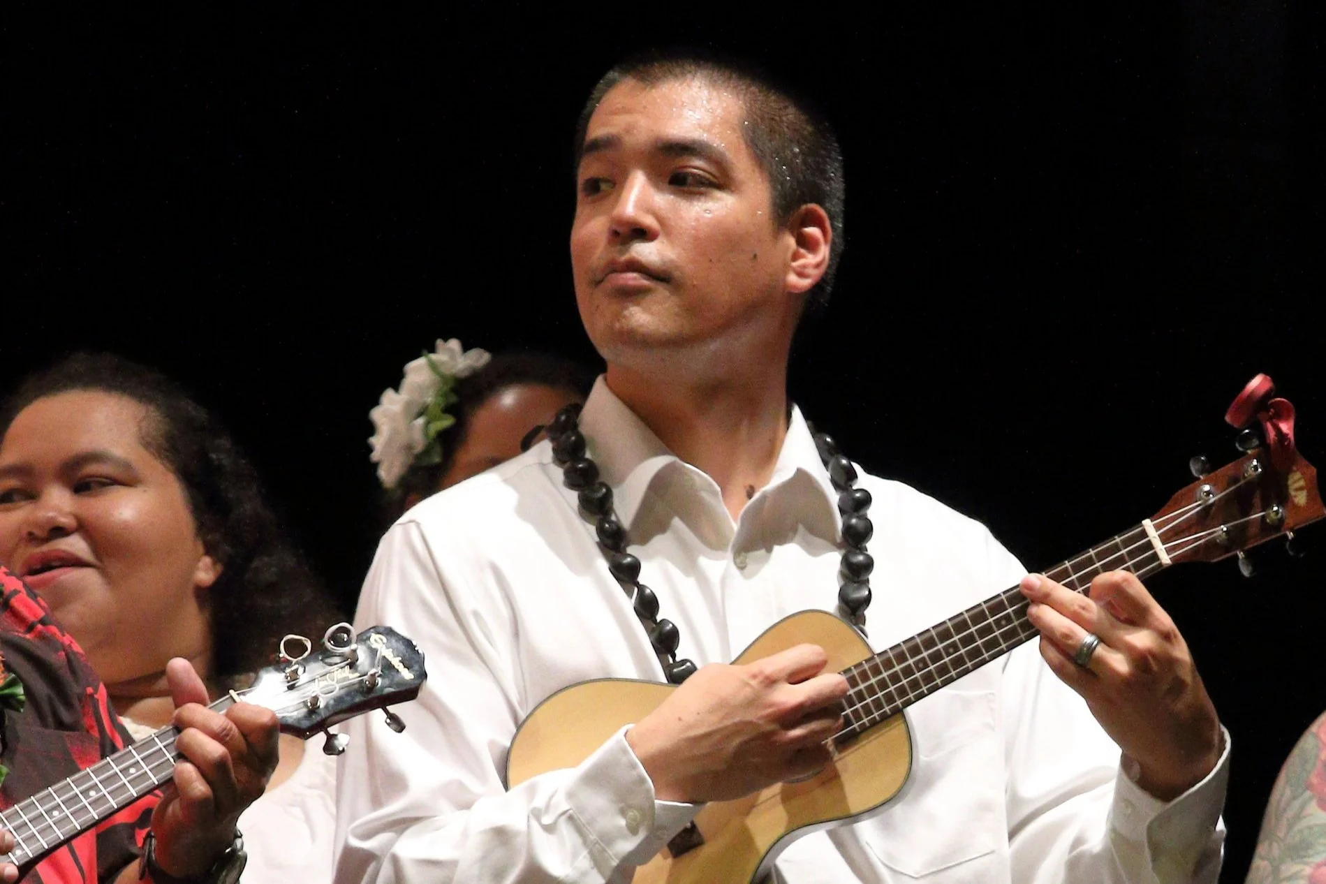 When Kaimana returned home in 2000, he began an apprenticeship with Hālau O Kekela, under the direction of Kumu Kela Miller of Lāʻie, fondly known as Aunty Kela throughout the community. A student of Kumu Cy Bridges, she has worked with dozens of Kumu across Hawaiʻi’s hula landscape. In 2009, Kumu Kela Miller accompanied Kaimana to Tokyo, Japan where she performed ʻuniki rites and endowed Kaimana with the gift and responsibility of Kumu.